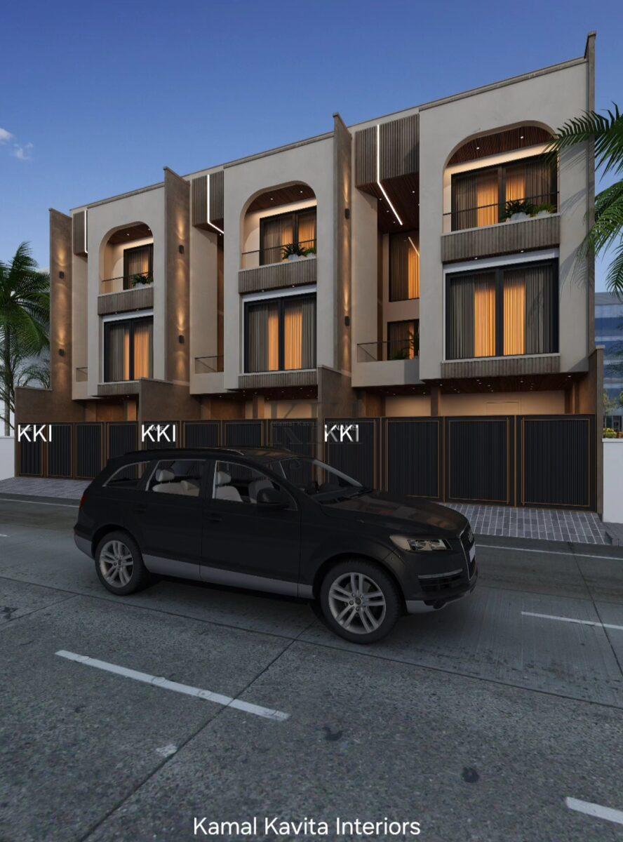 This Row Villa housing project for a prestigious realty group where in architecture & interior design is been executed by Kamal Kavita Interiors in jaipur, where in architecture & interiors are both aligned with modern & contemporary style outline which makes the villa look very open, clear & versatile as well, Designer Kavita Tolani kept the design in line with the practical requirement of the clients as well which helps the design to be timeless & more aligned towards futuristic approach. Speaking about elevation its quite vide & modern along side keeping it quite open which will allow the residents to enjoy the big balcony view from living room & Master bedroom as well.