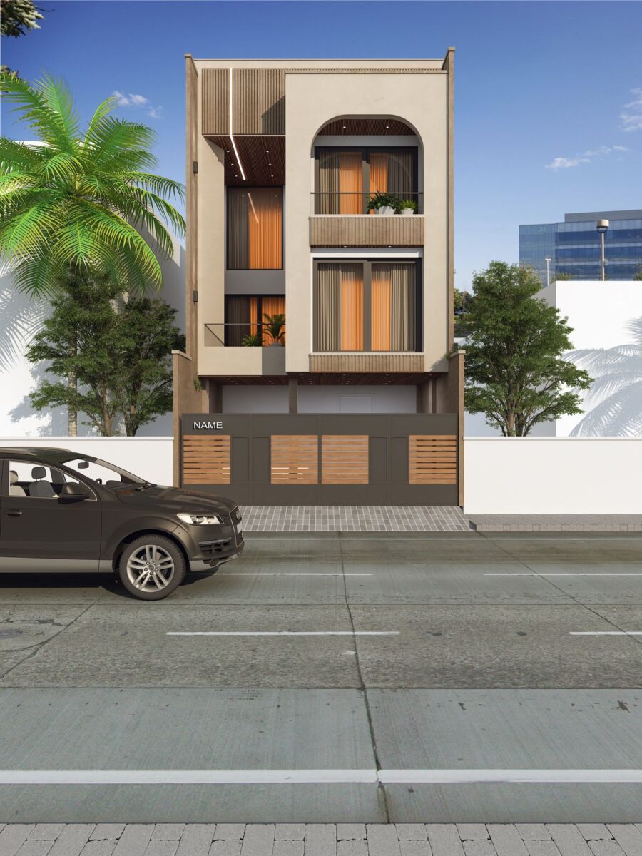 Home Designed by Kamal Kavita Interiors in Jaipur with Modern style and aesthetics which resonates with the design which they crafted for this villa in Vaishali nagar jaipur, villa was a plot of 135 sq yard where in we have given a concept of having stilt floor with parking and the villa has a beautiful balcony where in we have used terracota bricks ceiling design and kota stone flooring design which blends in the earthy and natural style theme together which also reflects the identity of Jaipur with terracota colour. Along with being earthy the house is also equipped with great technological advancement with required automation and wifi access at every floor also house is covered with security devices as well at every floor and sensors on terrace and car park for the security purpose which we feel is quite practical to have in modern homes today also which gives a sense of security to the owner as well