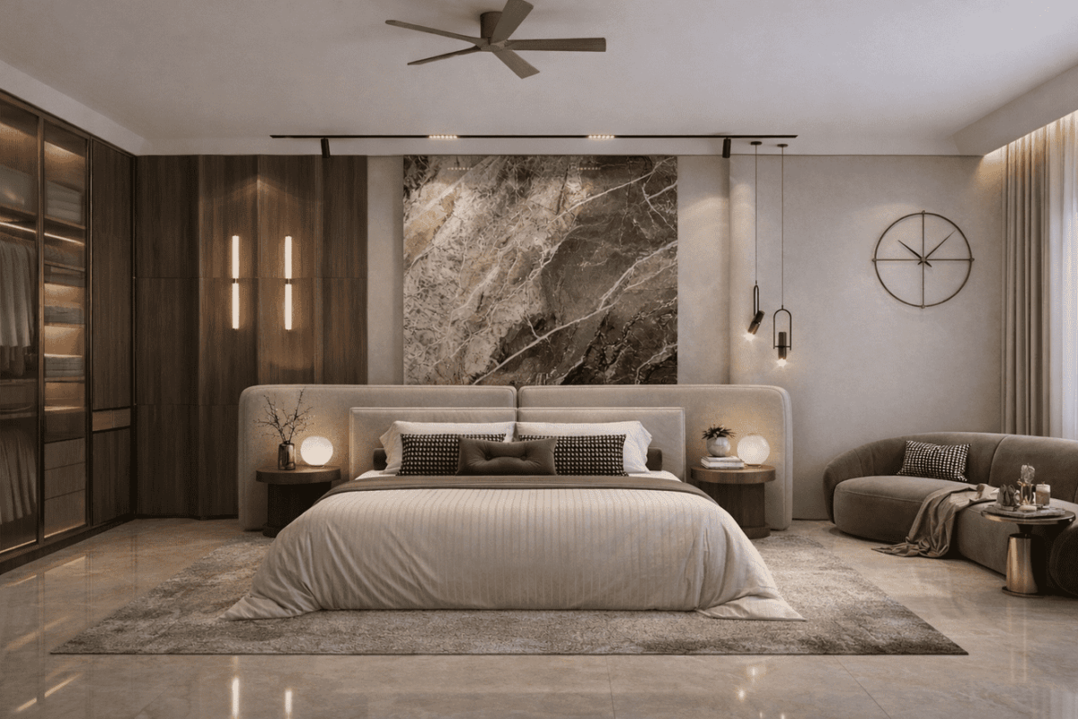 Master Bedroom designed with Luxury for a 5 bedroom villa in Jaipur | Interior Designer Jaipur | Kamal Kavita Interiors